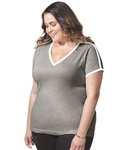 Women's Curvy Retro Ringer Premium Jersey V-Neck Tee