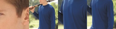 Contrasting yoke and top sleeve inserts add pizzazz to a moisture-management pullover.