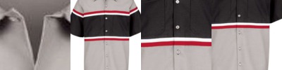 Contrast-color notched self-collar, body gussets and buttons rack up distinctive bowling style.