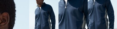 - 1x1 rib cuffs, waistband, and collar