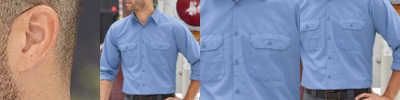 - Fabric laundered, 4.3 oz., 50/25/25 polyester/combed ringspun cotton/rayon