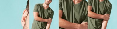 - Fabric laundered, 4.3 oz., 100% combed cotton jersey, 32 singles