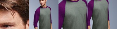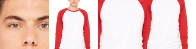 Retro style in soft jersey with contrast color collar, raglan sleeves, and a custom contoured fit.