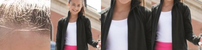 - Coverstitched ribbed knit binding on neck, shoulders and sleeves