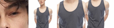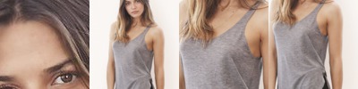 - Rib trim applied to neckline and armholes