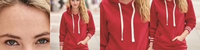 - Scuba neckline with dyed-to-match drawcords