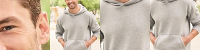 - Double-needle coverstitched hood, raglan sleeves, pocket openings and bottom band