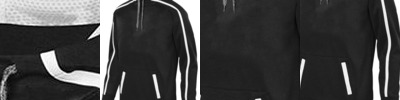 - 90/10 polyester/spandex neck and cuffs for added stretch and better fit over pads
