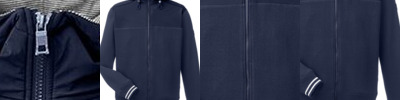 - 1x1 baby ribbed collar, cuffs, and waistband