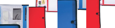 - Full-size organizer/folio with expandable folder pocket with hook and loop fastener, CD/DVD and business card slots on left side, writing pad on right side